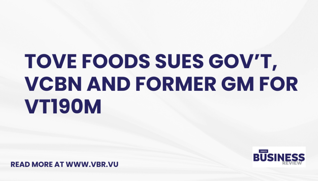 Tove Eats Limited, operating under the name Tove Foods, has filed a lawsuit totalling VT190 million against the Vanuatu Government, the Vanuatu Cooperative Business Network (VCBN), and former General Manager (GM) Craig Wakeford, citing claims of wrongful eviction and alleged premeditated theft of business.